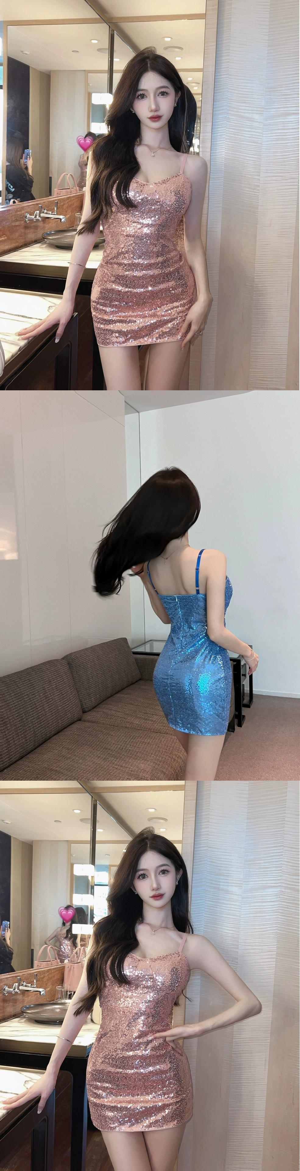 ナイトクラブドレス女性の夜の作業服セクシーなローカットディープ V ネック光沢のあるスパンコールバッグヒップサスペンダースカート Vネック yeyij41406542364