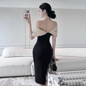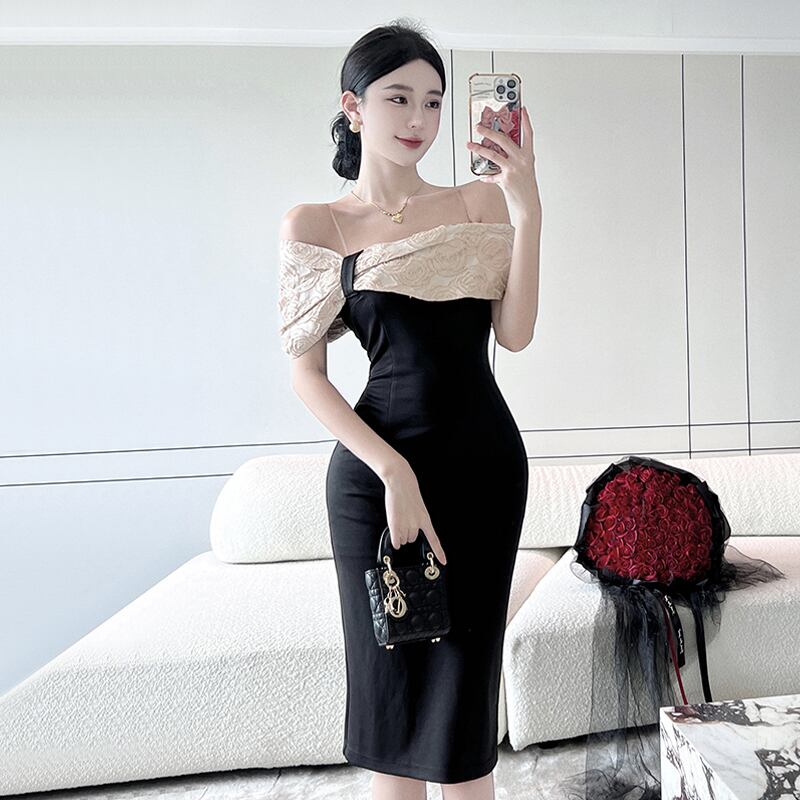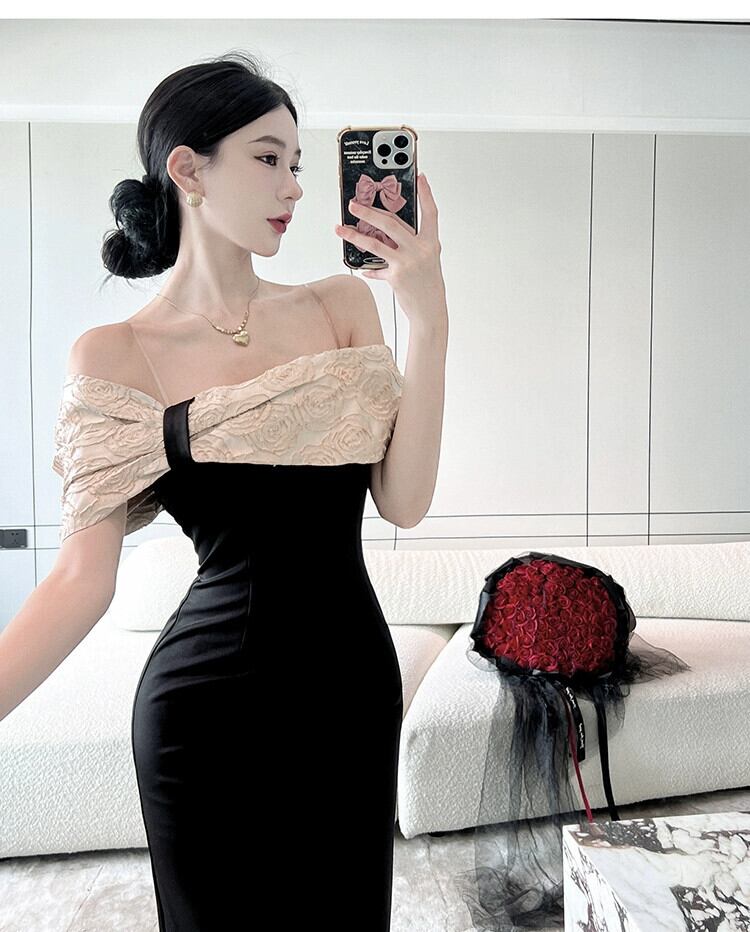 ヘップバーンスタイルのイブニングドレススカート女性の年次総会ライト高級ニッチハイエンドフレンチセクシーな見事なワンショルダーサスペンダードレス yeyij82012361925