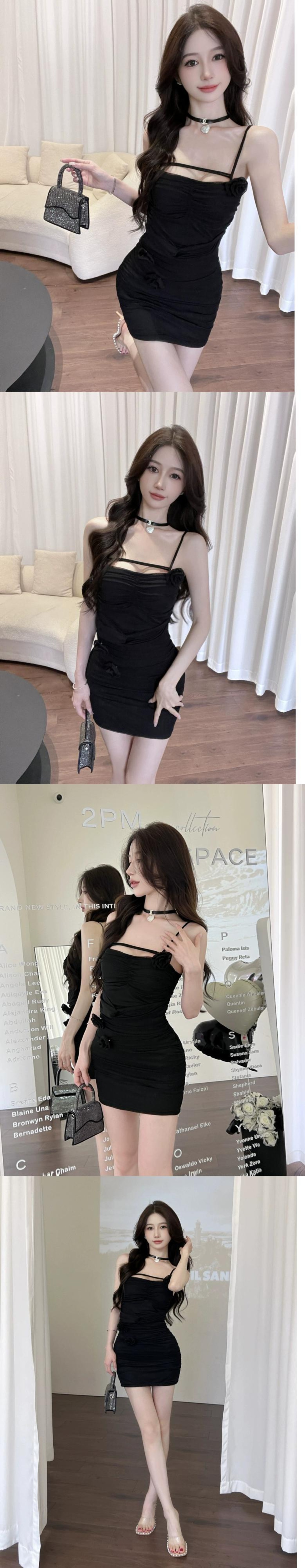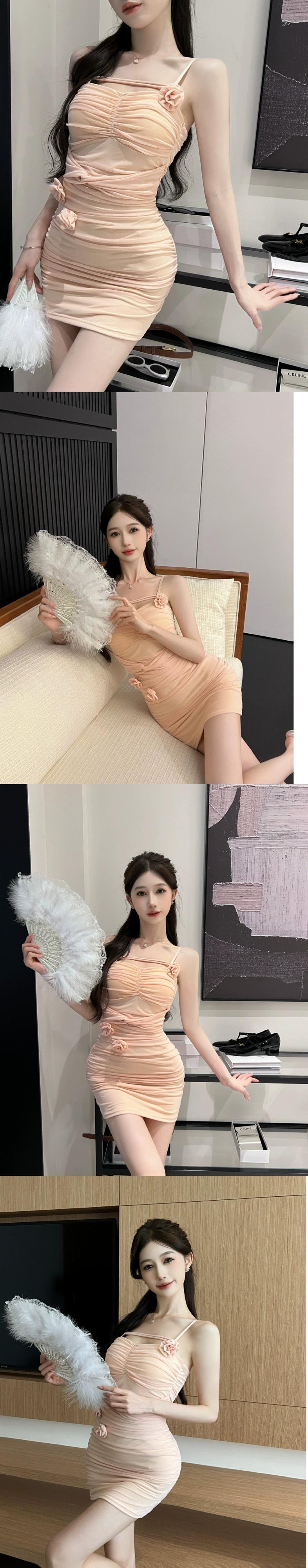 立体フラワースリングドレス女性の夏タイトフィット弾性プリーツヒップスカートセクシーなラップ胸オープンバックワンステップスカート エラスティック 伸縮 サマー 夏物 フラワーデザイン yeyij19428887539