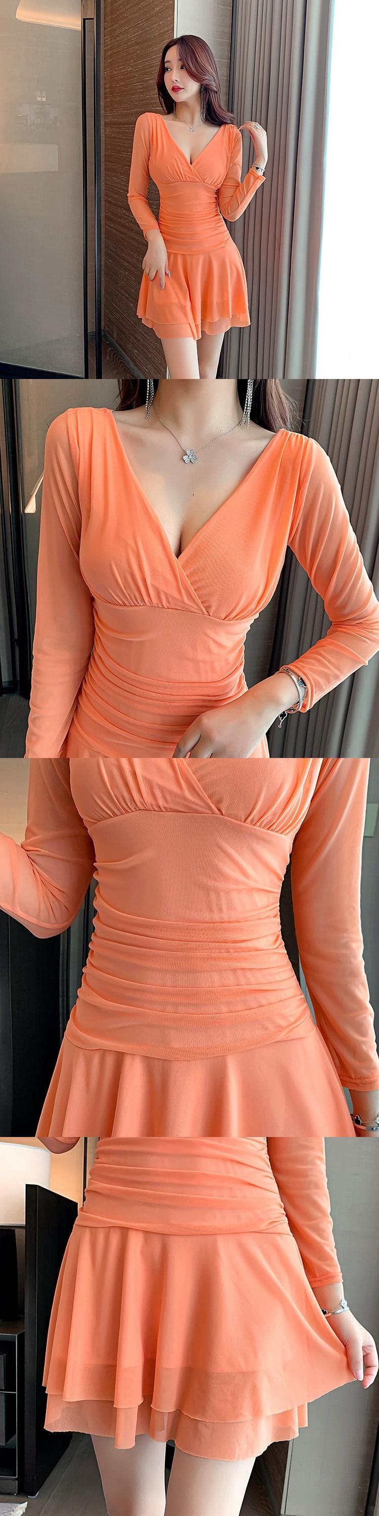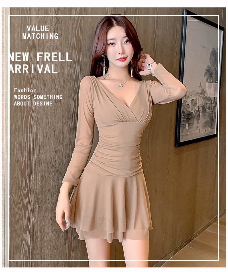 ナイトクラブの女性の秋のナイトクラブの作業服と作業服セクシーな V ネック長袖ヒップカバー底フィッシュテールドレス ロング オータム 秋物 Vネック yeyij31421683494