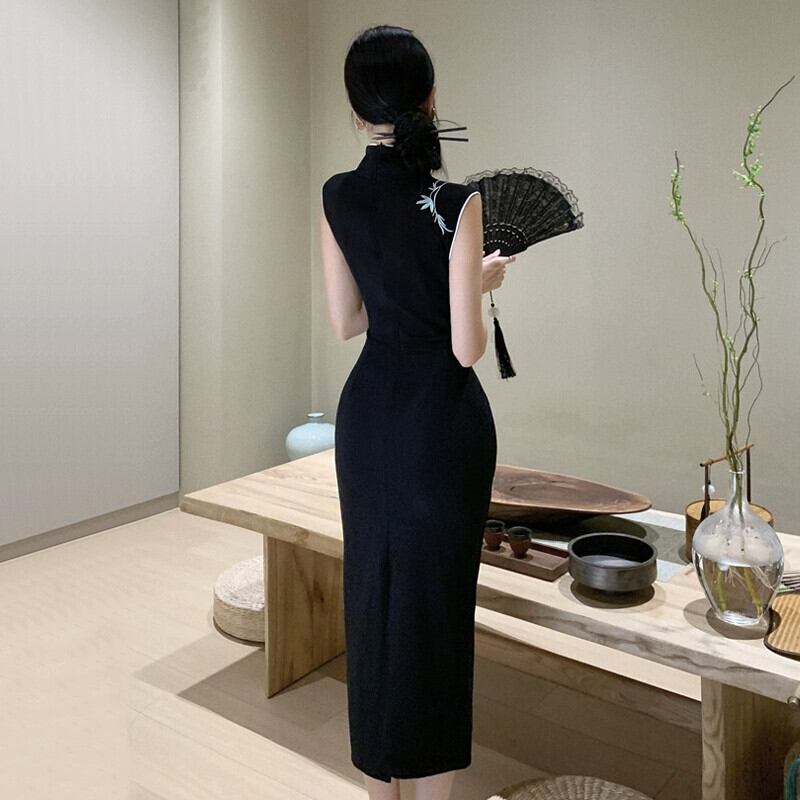 黒チャイナイブニングドレスロングスカート女性ハイエンド重工業刺繍年次総会気質スリム中国風ドレス ブラック yeyij11233614090