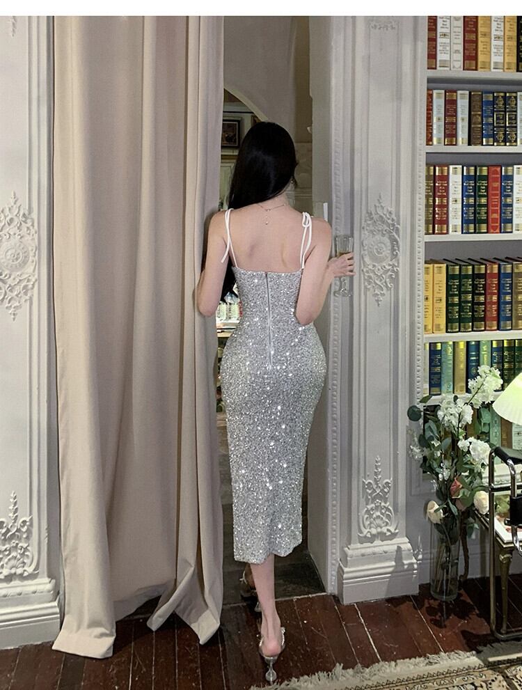 イブニングドレスハイエンドライト高級ニッチハイエンド年次総会ホスト女性トースト服セクシーなスパンコールサスペンダードレス yeyij34094407001