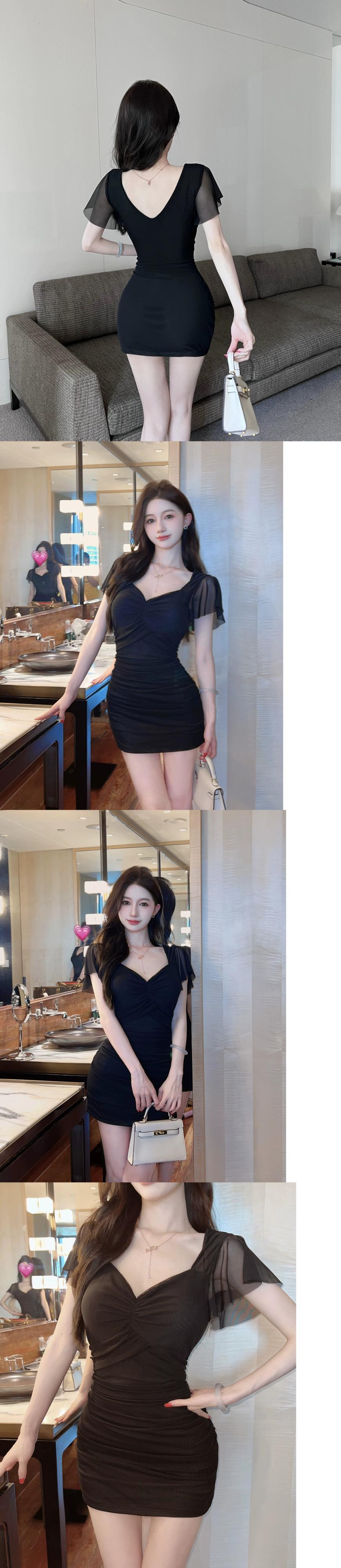 ナイトクラブの女性のナイトクラブの作業服と作業服セクシーな V ネックスリムスリムメッシュフライングスリーブドレス Vネック yeyij38521940326