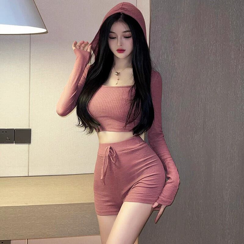 スポーツスーツ女性初秋の純粋な欲望のセクシーなフード付きショートへそ出しトップ + ハイウエストショートスカート 2 点セット オータム 秋物 ピュア yeyij19843872983