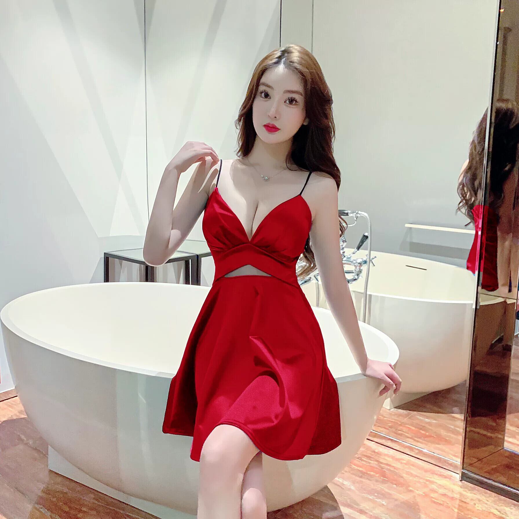 ナイトクラブの女性のナイトクラブ作業服セクシーな中空ローカット深い V ネックウエスト痩身大スイングサスペンダードレス Vネック yeyij31645100219