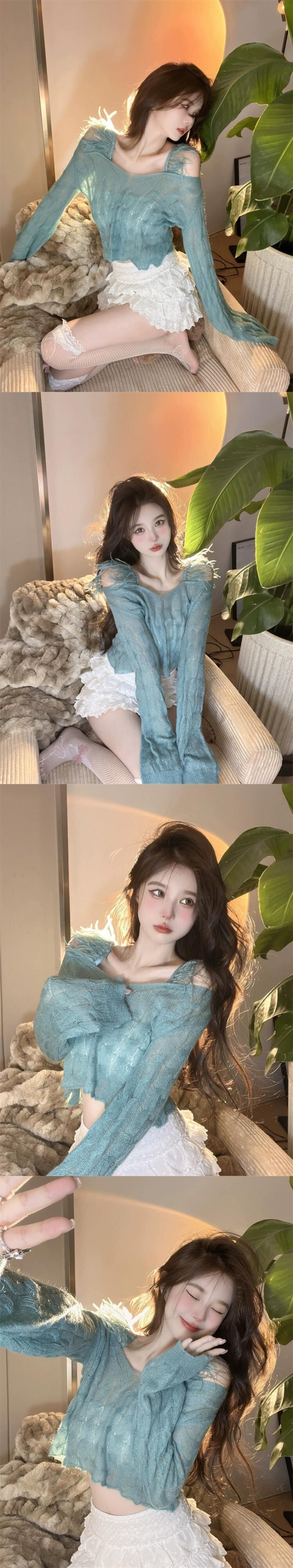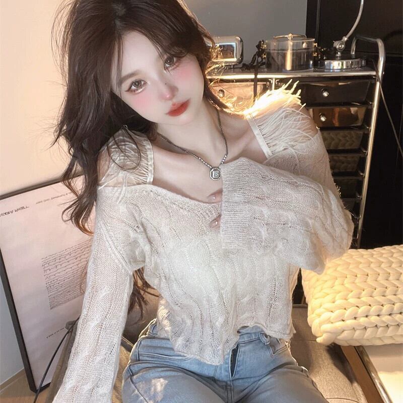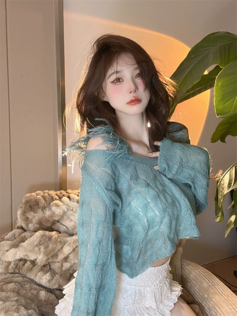 ライブ衣装、女子アナ、ポージェニック、スーパーフェアリー、セクシー、一言襟、オフショルダーストラップレストップ、ショートセクション、へそニット yeyij74373533951