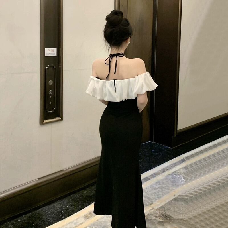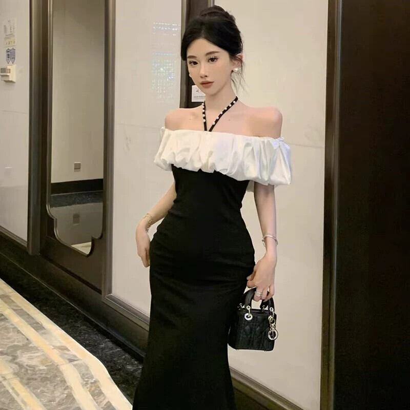 ヘップバーン スタイルのイブニング ドレス、フェミニン、ライト、ラグジュアリー、ニッチ、ハイエンド、フレンチ、セクシー、見事な、ワンショルダー ドレス yeyij4528160163