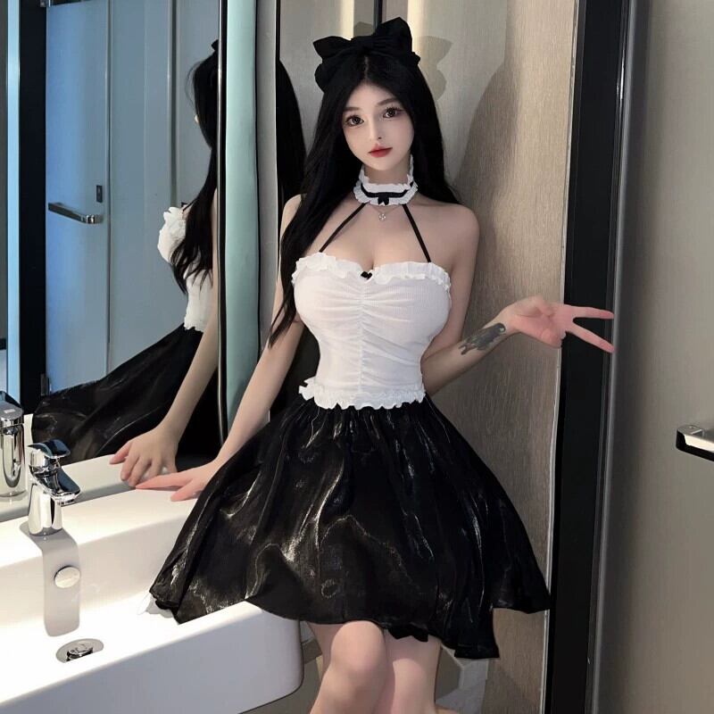 生放送服女性アンカー pogenic フレンチメイドスタイル純粋な欲望ネクタイセクシーなチューブトップふくらんサスペンダードレス ピュア yeyij80277201522