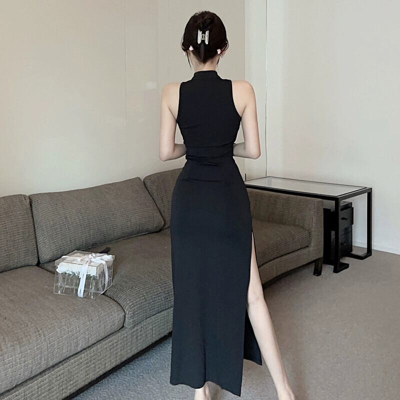 黒チャイナイブニングドレスロングスカート女性ハイエンド宴会気質中国風のセクシーな中空ノースリーブドレス ブラック yeyij17201326563