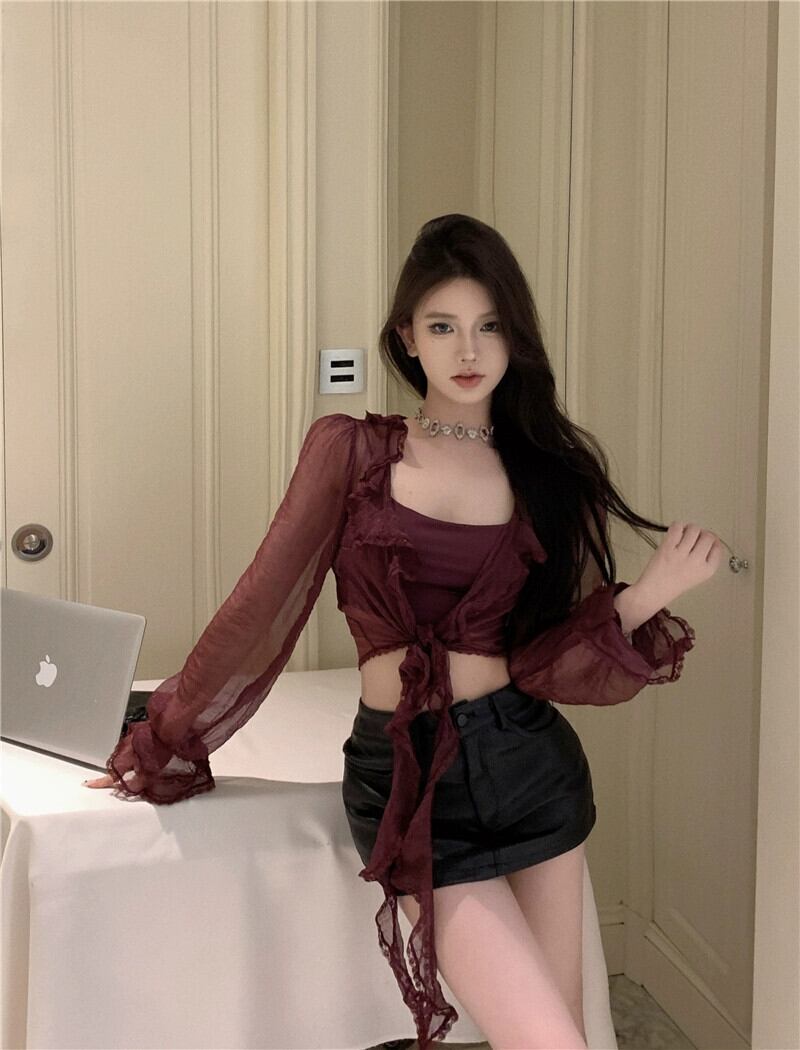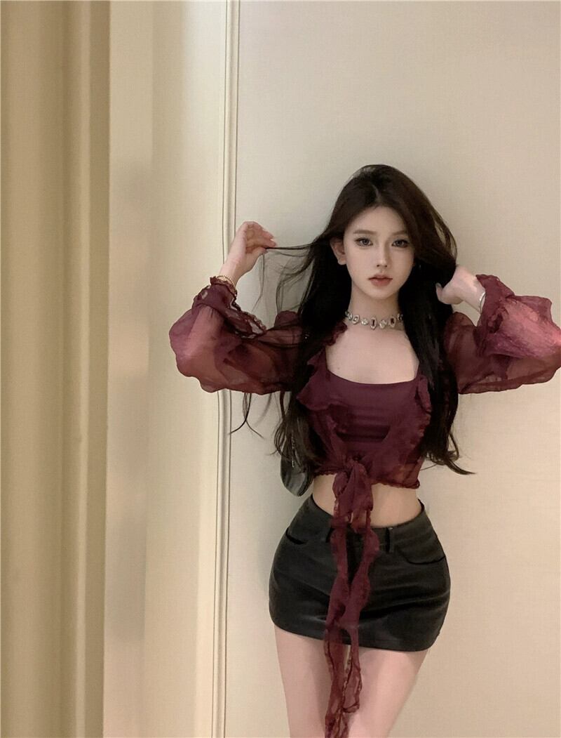 生放送服女性アンカー pogenic ハイエンド純粋な欲望フレンチ スーパー フェアリーセクシーなショート 2 点セットへそ露出トップ ピュア yeyij40054984279