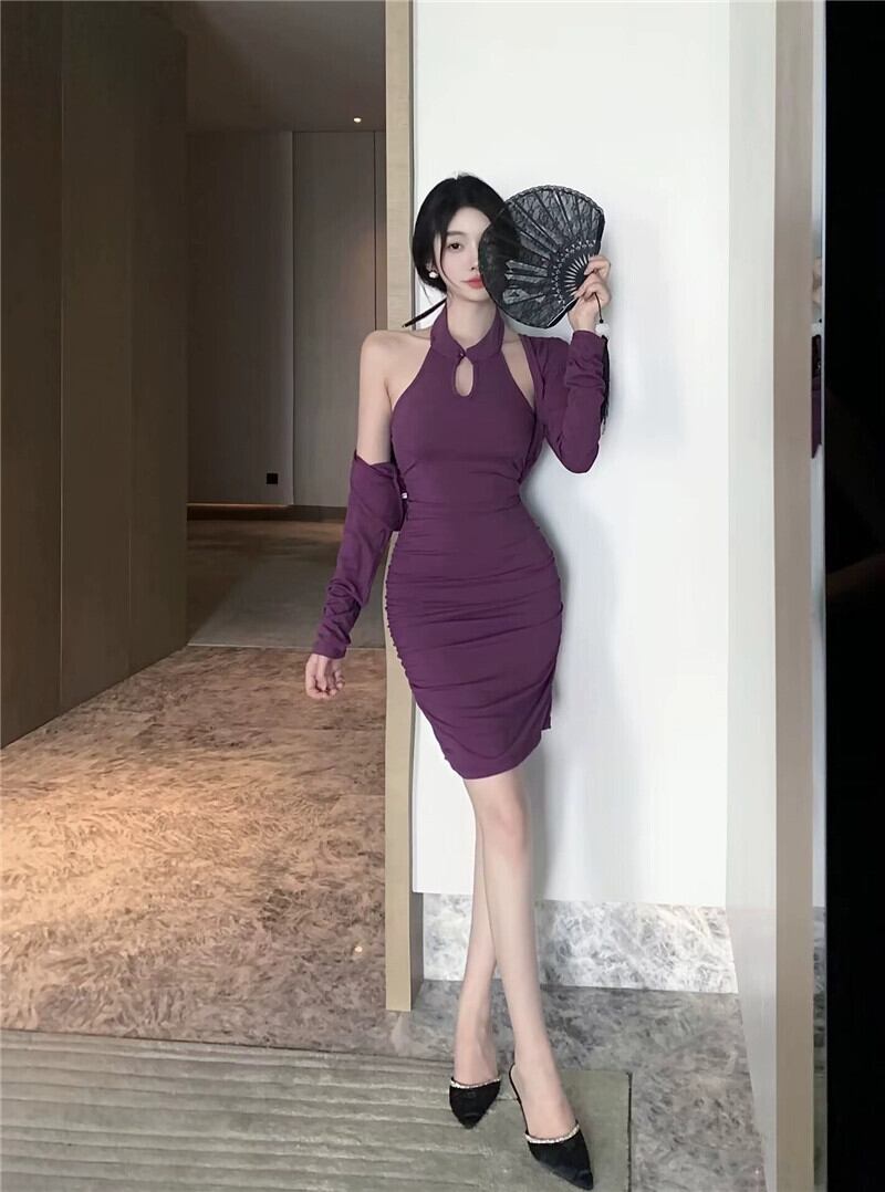 生放送服女性アンカーカーディガン小さなジャケット+セクシーな若い改良されたチャイナドレスホルターネックドレススーツ yeyij37668115125