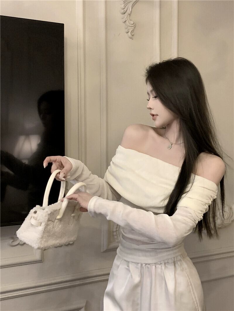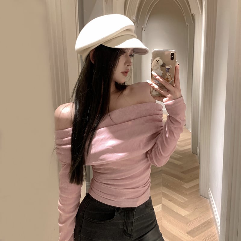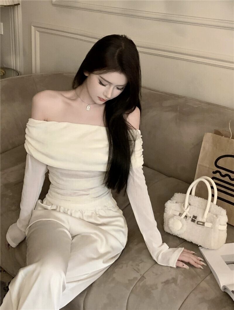 生放送服女性アンカー pogenic ハイエンド純粋な欲望ネクタイセクシーなワンショルダー T シャツ見事なオフショルダートップ Tシャツ ピュア yeyij22838984792