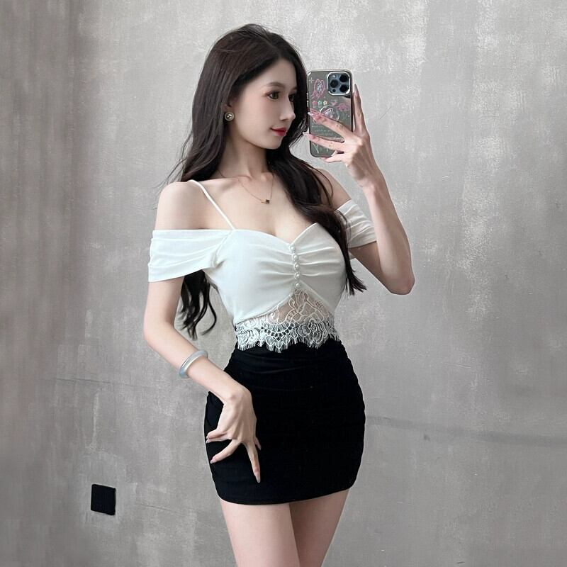 ナイトクラブの女性のナイトクラブ作業服作業服セクシーなレースステッチワンショルダーサスペンダードレス yeyij42337182869
