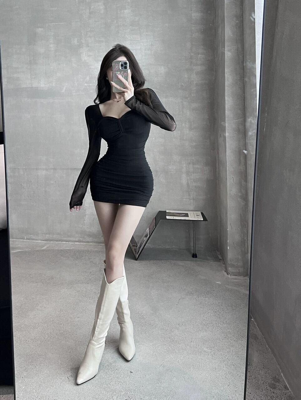 ナイトクラブの女性のナイトクラブ作業服作業服セクシーなローカット V ネック長袖メッシュヒップカバードレス ロング Vネック yeyij69030203562