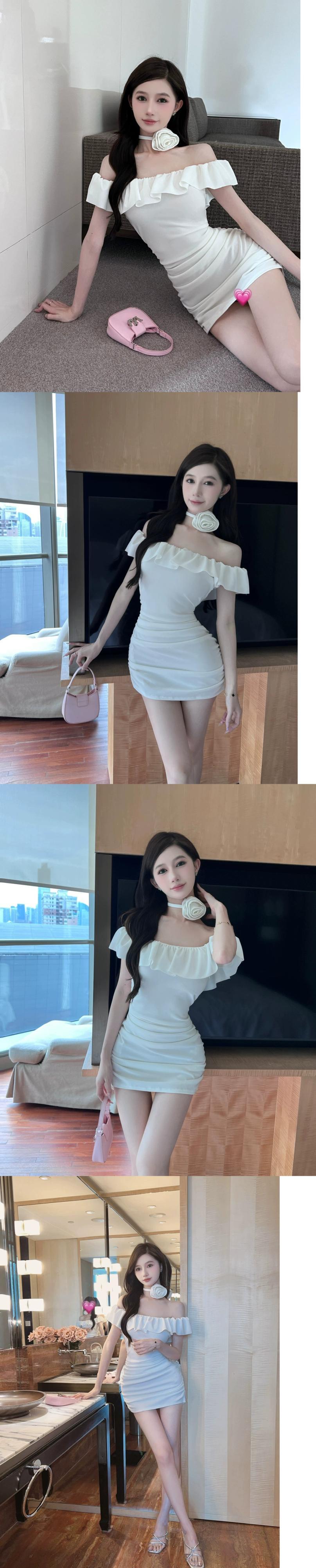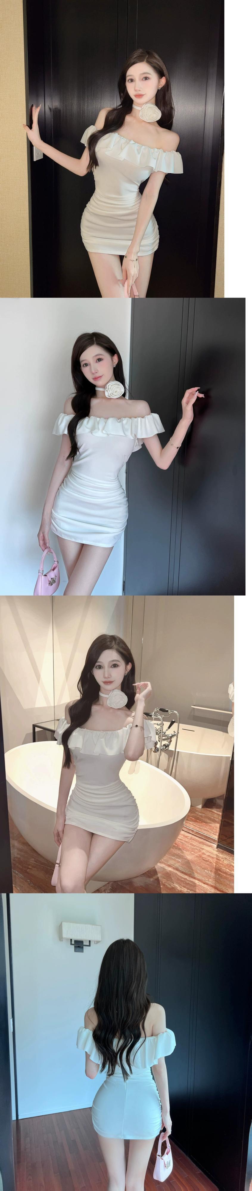 生放送服女性アンカー pogenic 純粋な欲望スタイルのフレンチドレスセクシーなオフショルダーフリルワンショルダードレス ピュア yeyij2997465506
