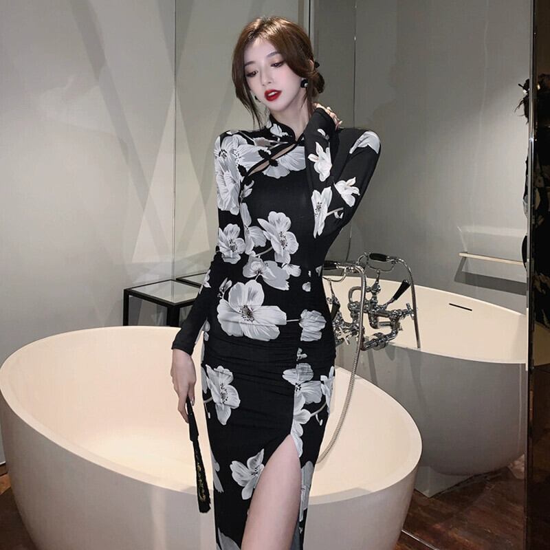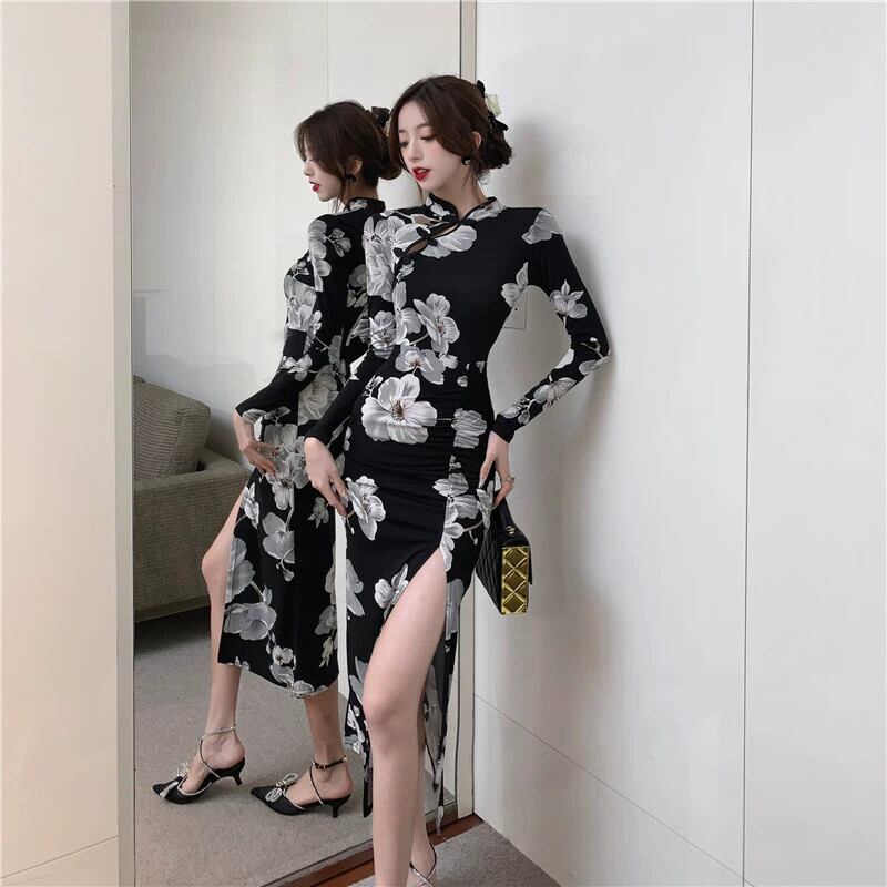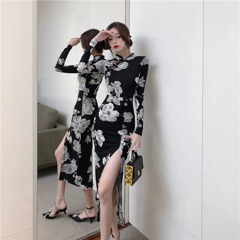 改良されたチャイナドレス新 2023 新しい秋服ヤングスタイルハイエンド気質レトロプリント中国風ドレス オータム 秋物 yeyij30463588325