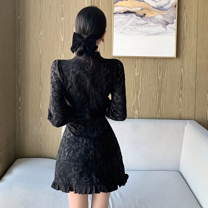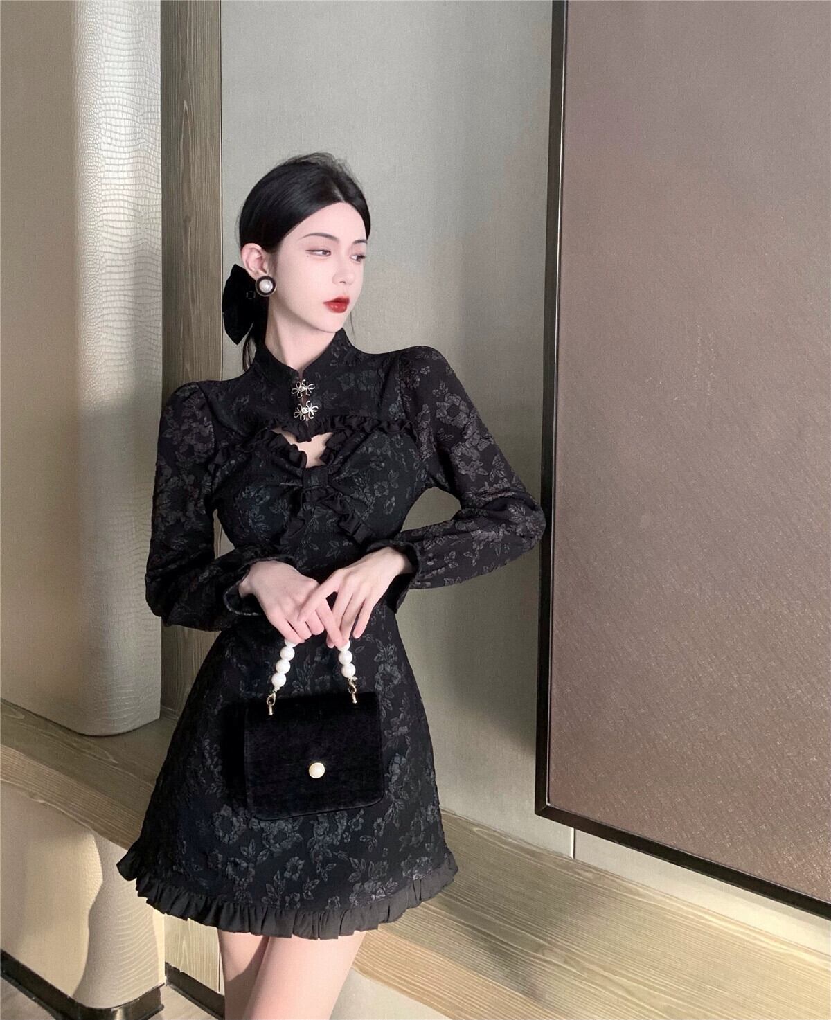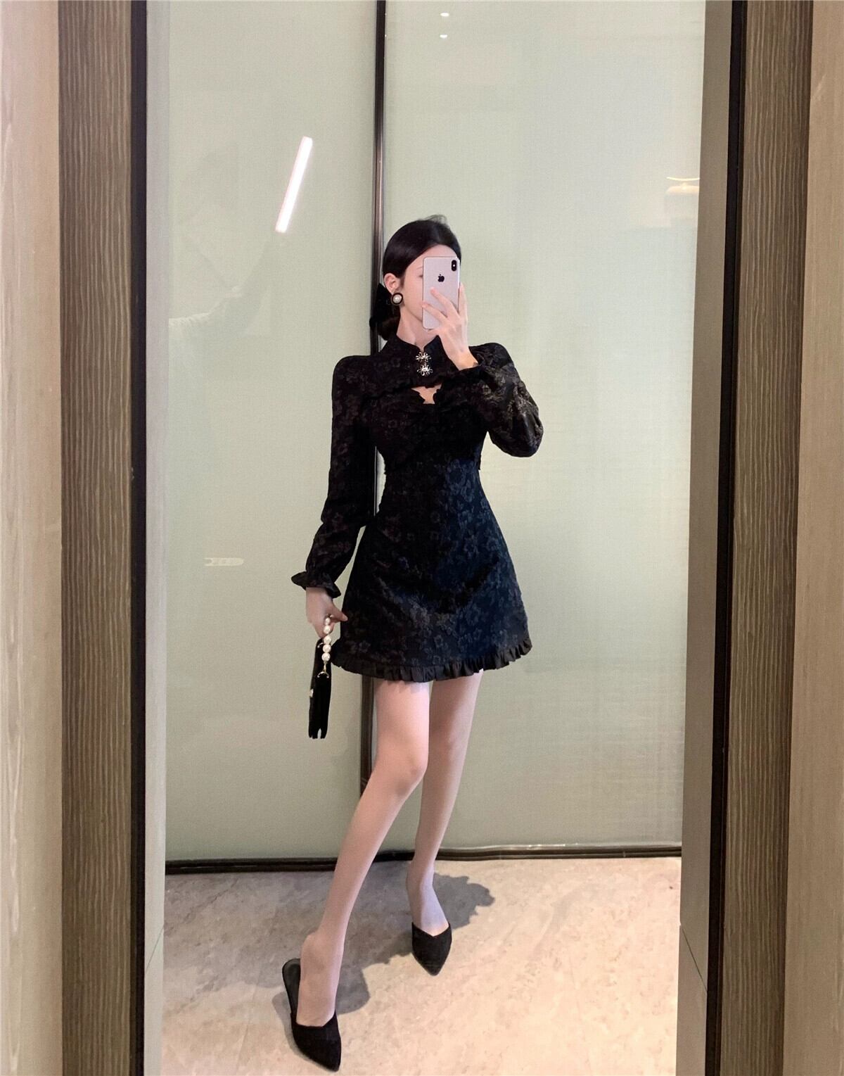 チャイナドレスの改良版、若いスタイル、高級な気質、2023年秋の新作デイリーブラックフレンチレトロドレス オータム 秋物 yeyij18787471398