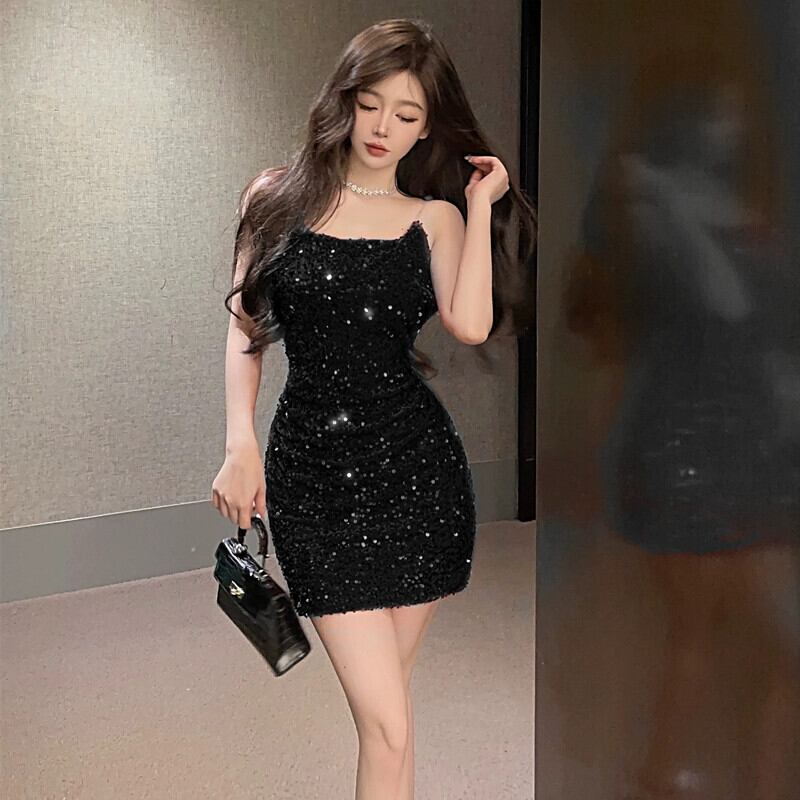 イブニングドレス、ハイエンドでエレガントな、ハイエンドの女性年次総会赤い輝くスパンコールのセクシーなサスペンダードレス レッド yeyij10166569574
