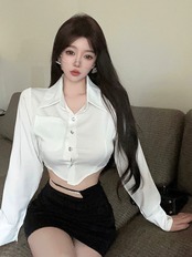 jk unim スーツ女性の秋のナイトクラブセクシーなショートへそ出し白シャツトップハイウエストショートスカート 2 点セット ホワイト オータム 秋物 yeyij3577728707