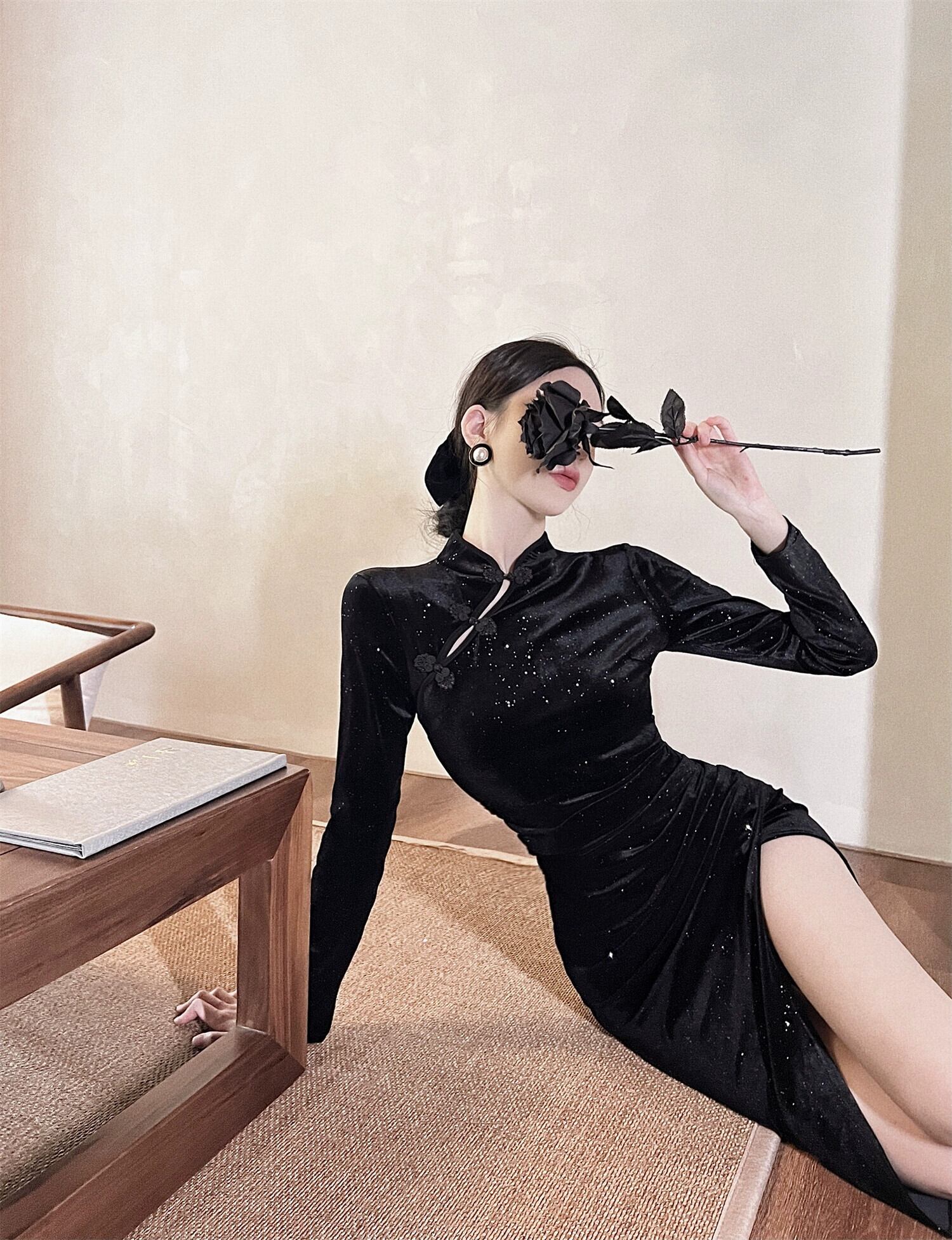 改良されたチャイナドレス新しい2023新しい秋の摩耗若いスタイルのハイエンドの気質ブラックゴールドベルベット中国風ドレス オータム 秋物 yeyij83042333150