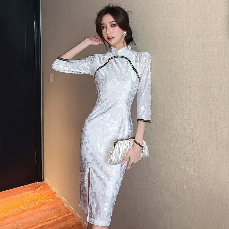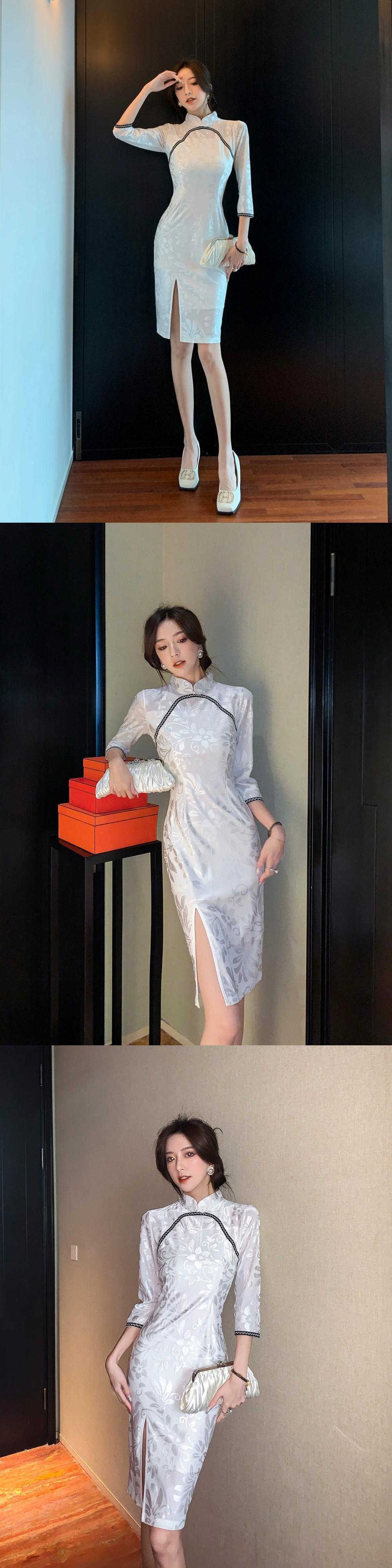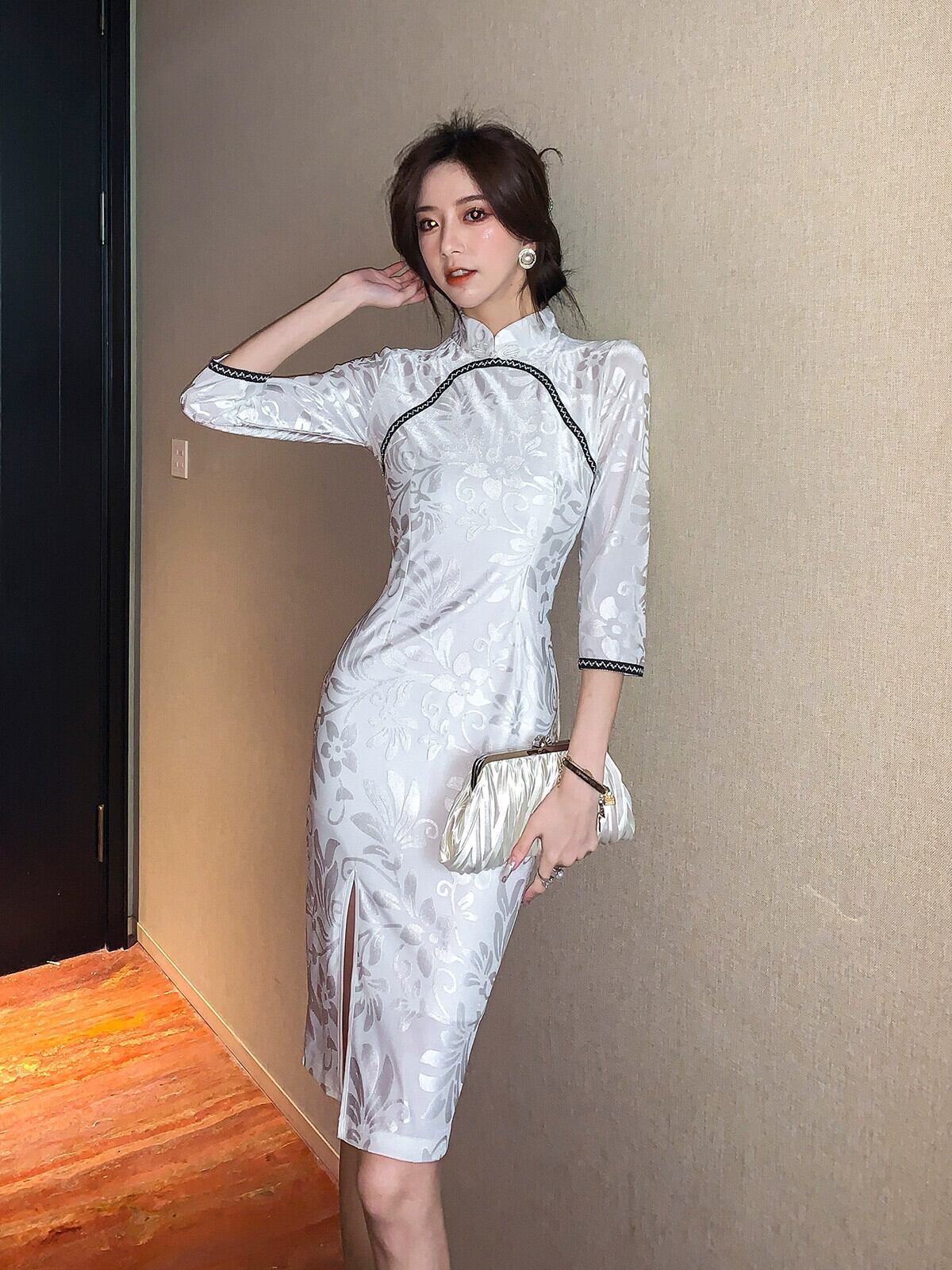 チャイナドレスの改良版、2023初秋の新スタイル、若いハイエンドの気質、スリムな七分袖中国風ドレス オータム 秋物 yeyij43392568151