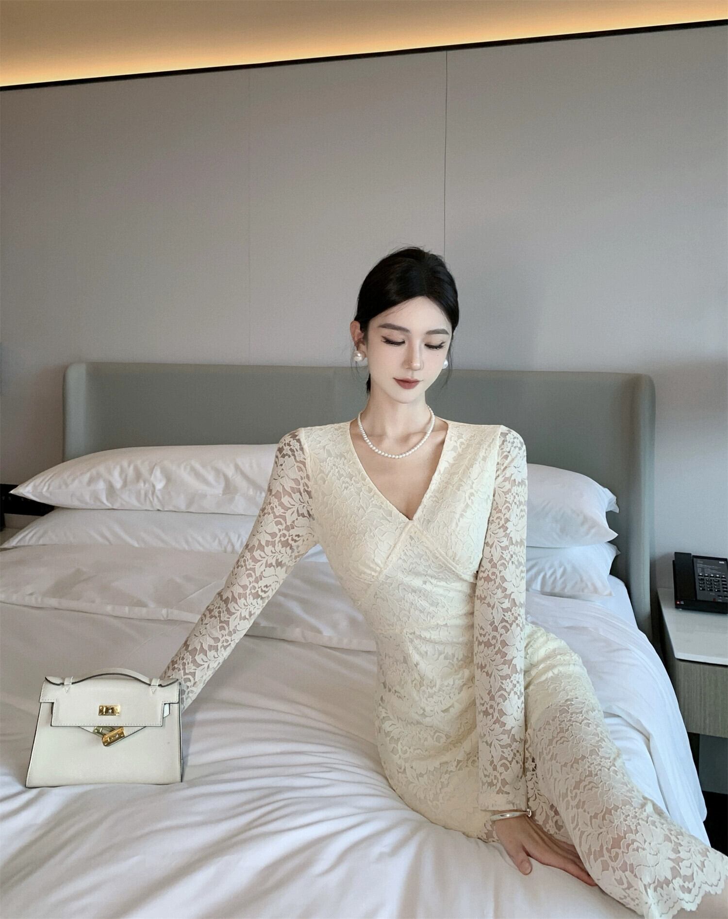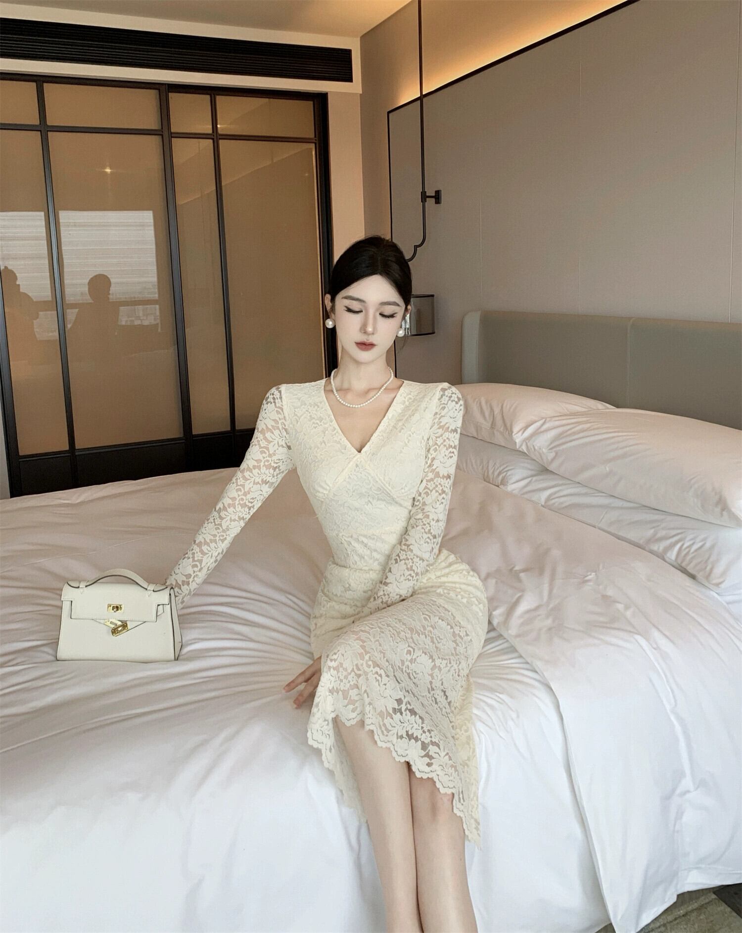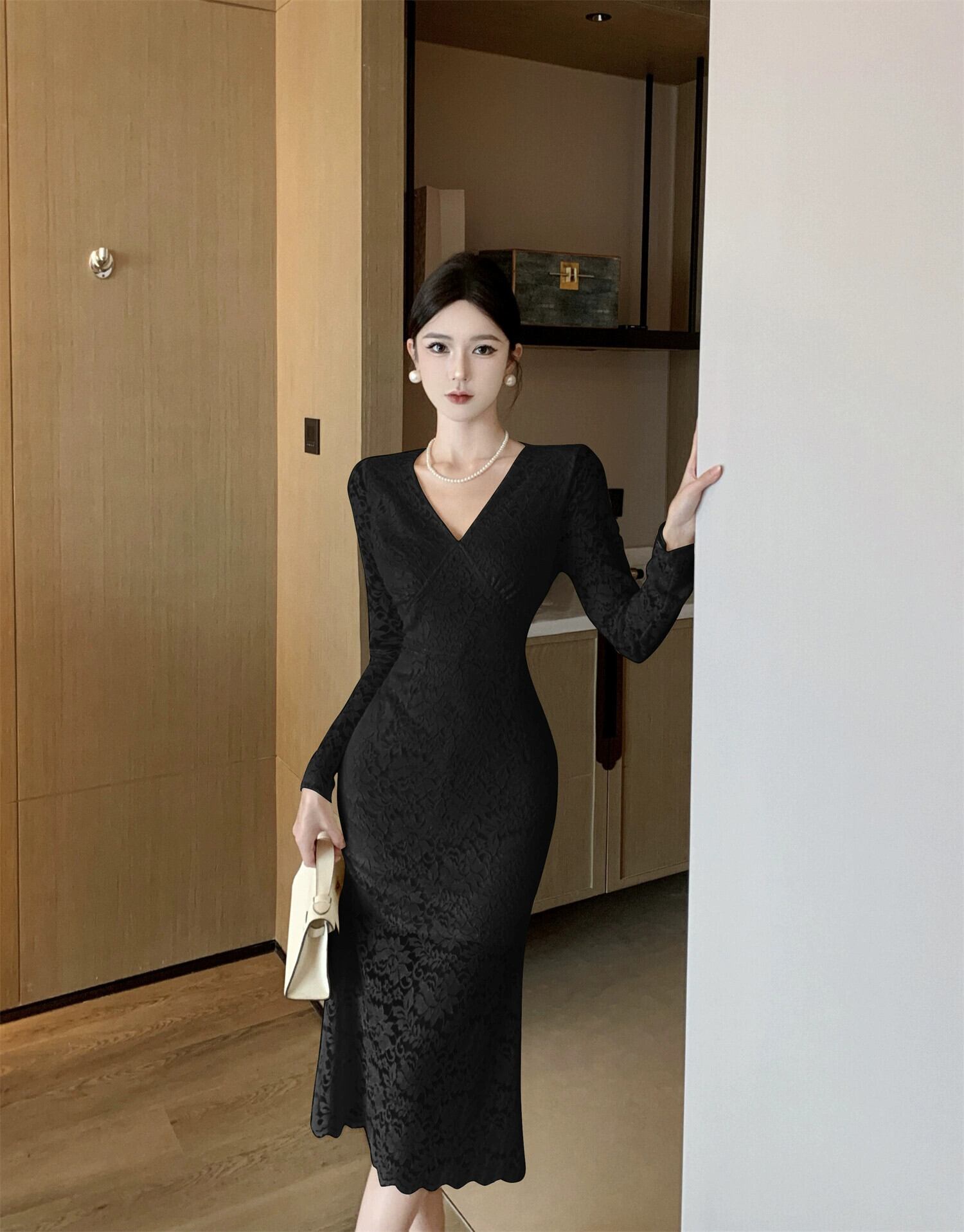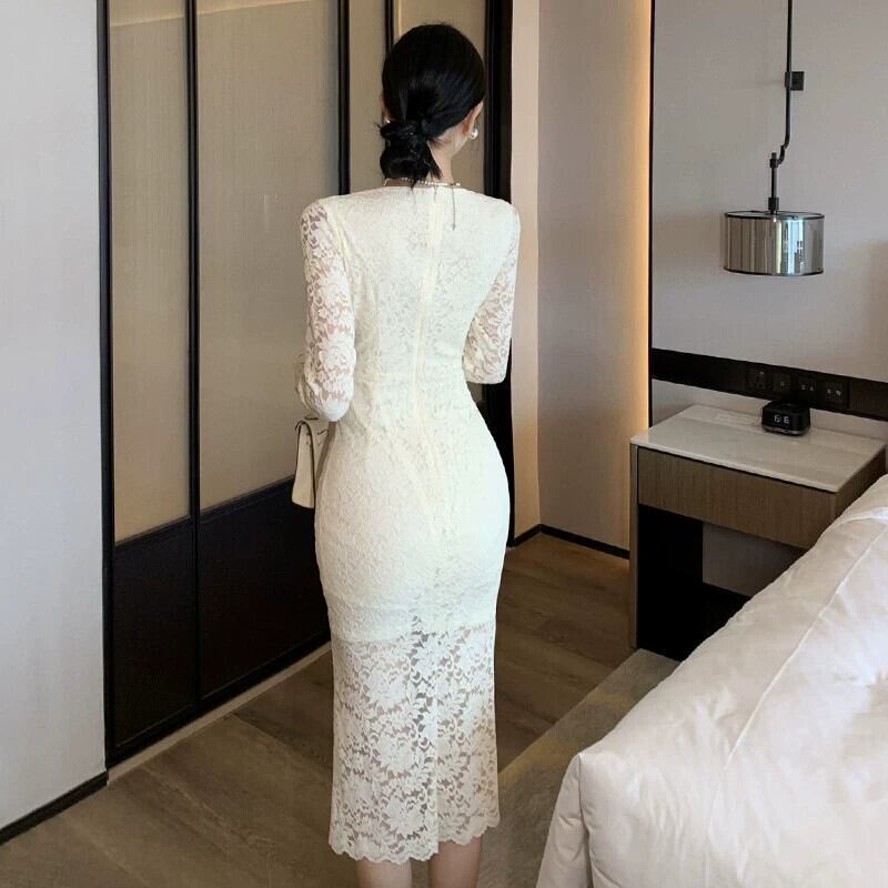 気質ドレス女神スタイル初秋の新スタイルハイエンドライト成熟したロイヤルレディスタイルミドル丈レースフィッシュテールスカート オータム 秋物 yeyij66733686637