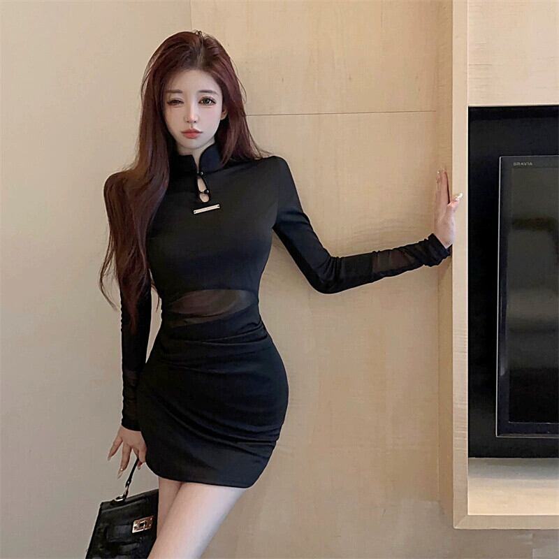 生放送服女性アンカー pogenic 若いスタイルのセクシーなメッシュステッチ中空ウエスト露出改良版チャイナ ドレス yeyij72927983656