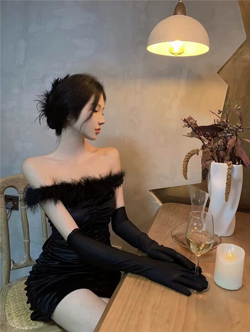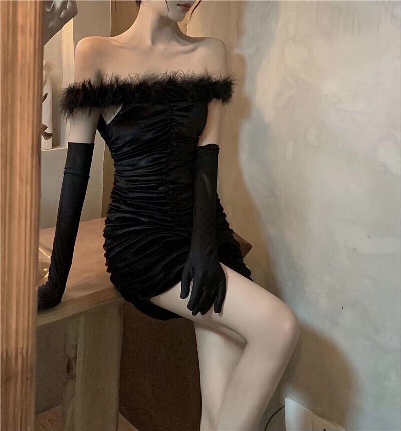 イブニングドレス、ハイエンドでエレガントな、ハイエンドの女性年次総会ショートセクシーなゴールドベルベットのワンショルダードレス yeyij290830607