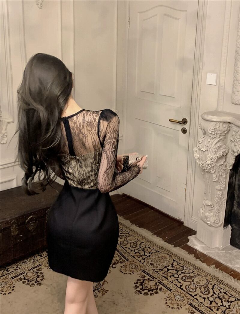 強力なオーラのドレスの女性、秋スタイルのフランスのハイエンドのセクシーなまつげレースステッチヒップハグボトミングスカート オータム 秋物 yeyij85679224452