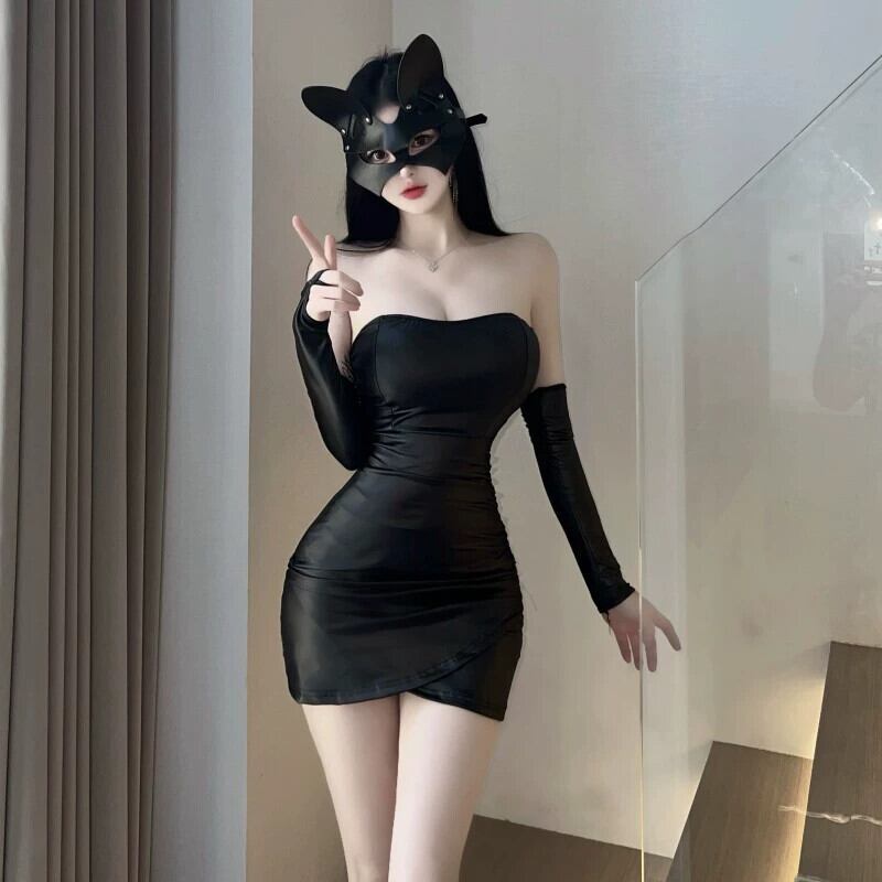 ナイトクラブの女性のナイトクラブ作業服ダンスアンカー服セクシーな黒の PU レザーヒップバンドードレス ブラック yeyij96564348911