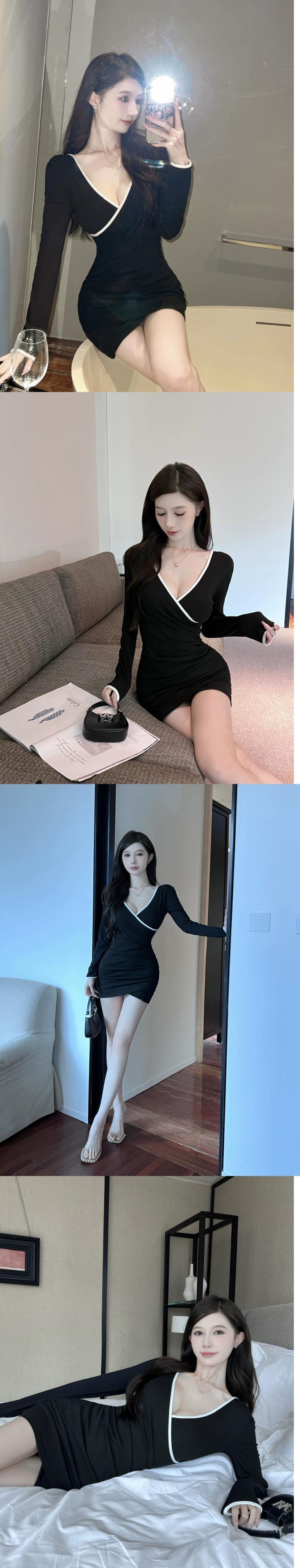 ナイトクラブレディースナイトクラブ作業服、作業服、技術者作業服、セクシーなローカットクロスVネックボトリングドレス yeyij1317021583