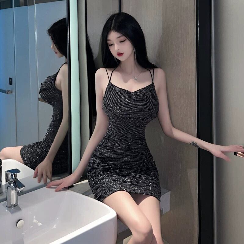 ナイトクラブ婦人服ナイトクラブバーディスコスパークリングシルクセクシー露出バックパック尻ホルターネックサスペンダードレス リュック yeyij15847176637