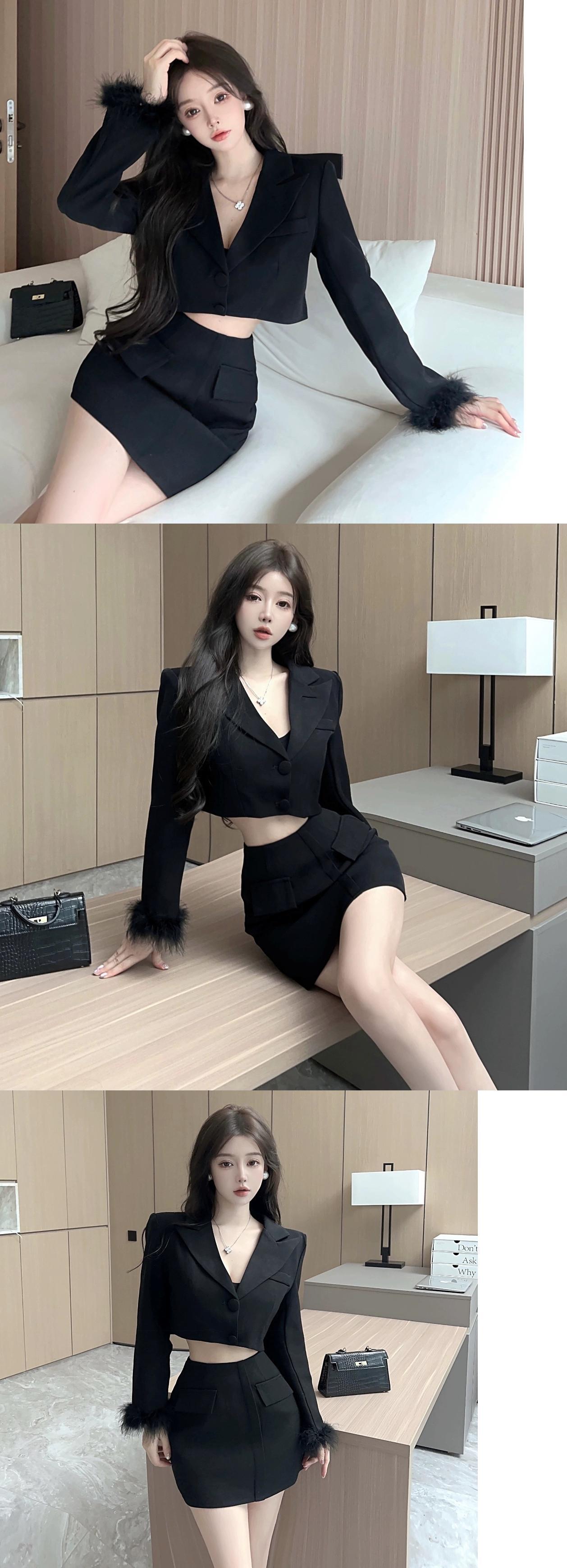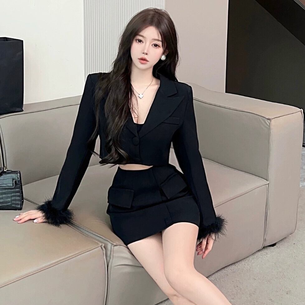 初秋のYouayoushaスーツ女性、ネットセレブのセクシーなショートスーツトップ+ハイウエストスカートの2点セット ハイウェスト オータム 秋物 yeyij78286158514