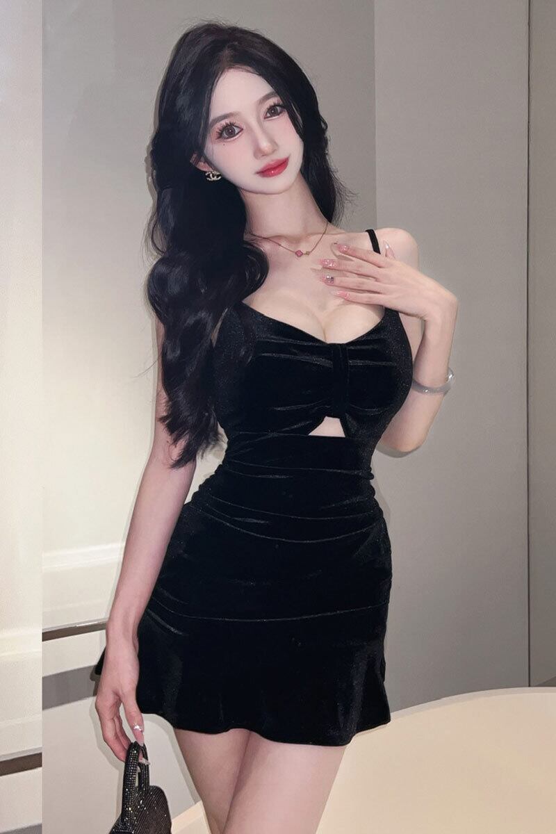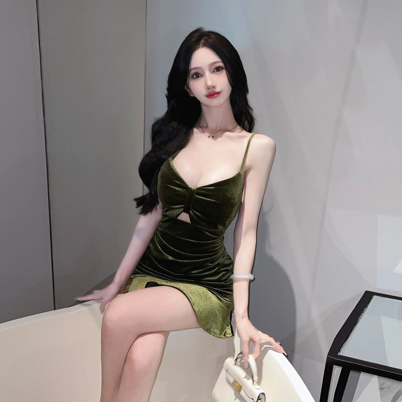 ナイトクラブの女性のナイトクラブ作業服作業服セクシーなローカット V ネックベルベットフィッシュテールサスペンダードレス Vネック yeyij23154938645