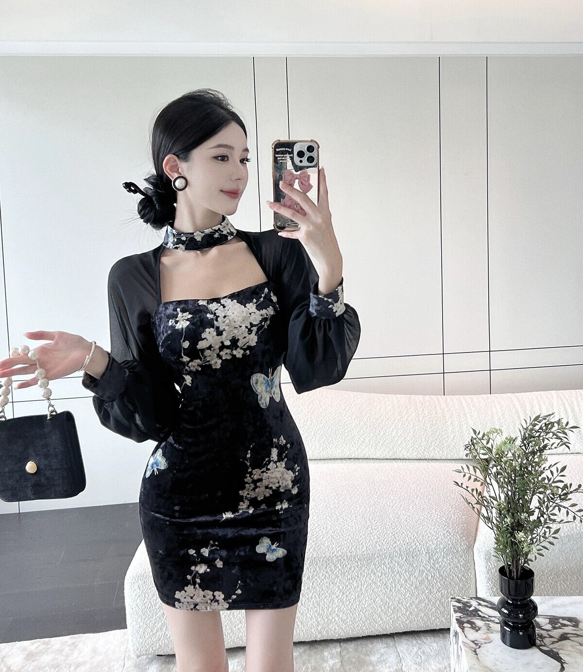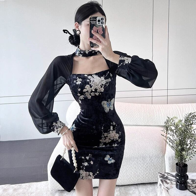 生放送服女性アンカー pogenic 若いセクシーなメッシュ スプライシング改良版チャイナ ドレス yeyij67492913019
