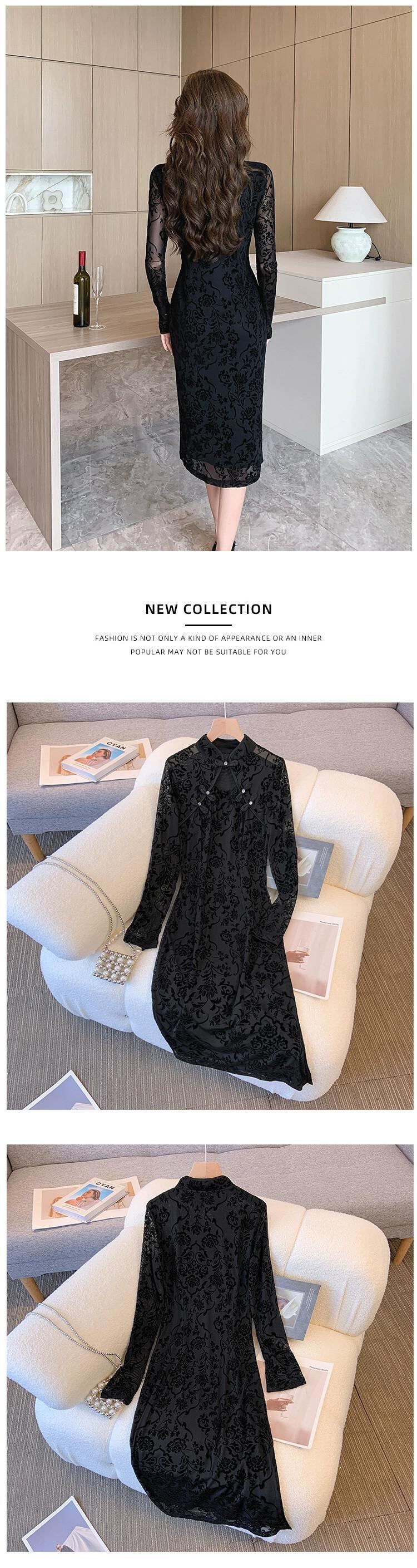 2023 秋の新スタイルの女性社交界の気質女神スタイルのセクシーな中空スリムレースチャイナドレス改良版ドレス オータム 秋物 yeyij54796617375