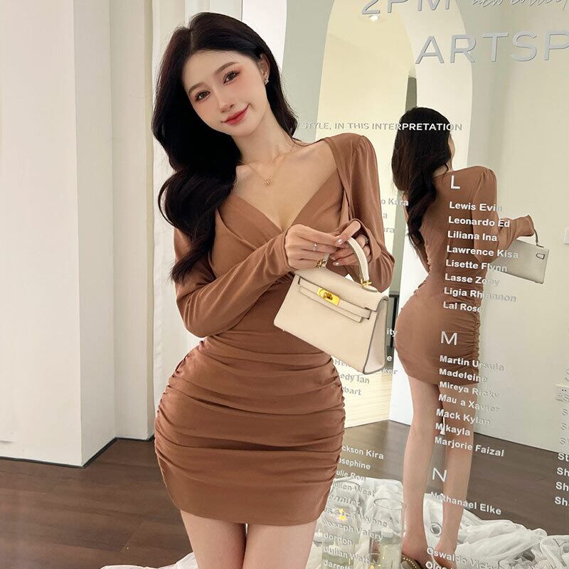 ナイトクラブの女性用ナイトクラブ作業服、技術者作業服、セクシーなローカットクロスVネックヒップハグボトリングドレス yeyij17009595483