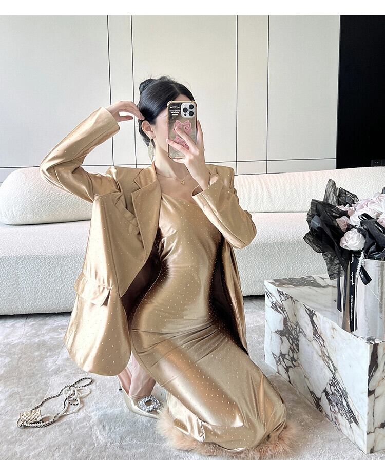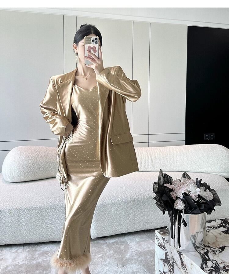 色:シャンパンショートコート,シャンパンサスペンダードレス