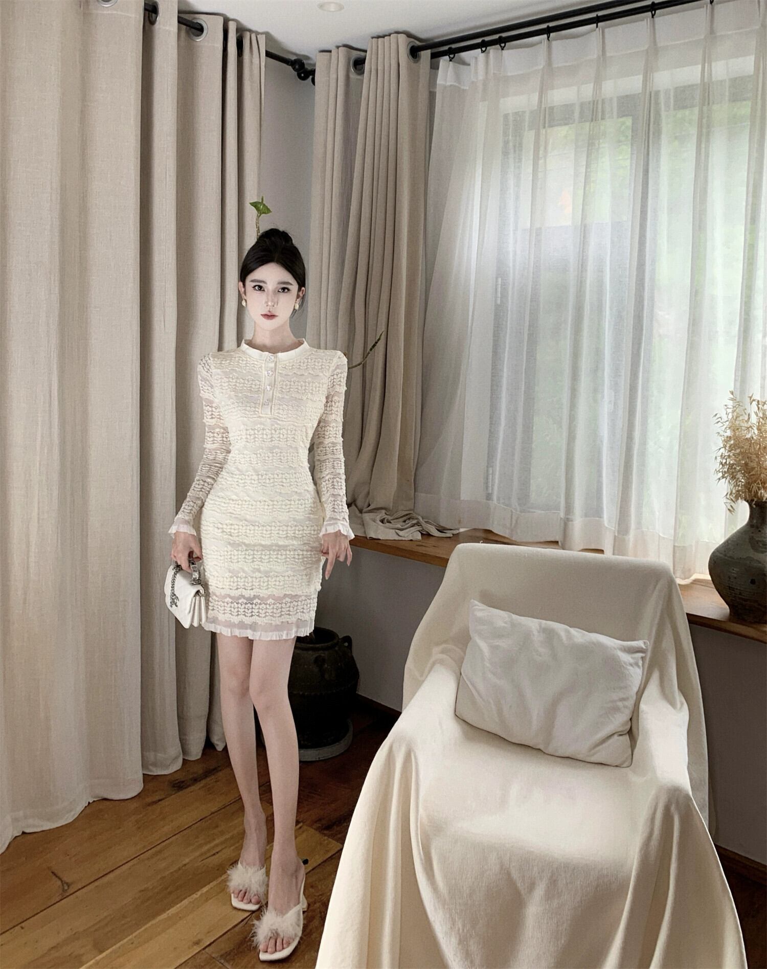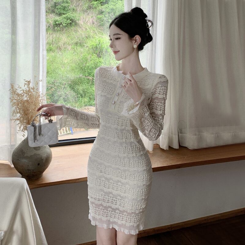 洋装ドレス、女神風秋のハイエンドレディウエスト痩身フレンチレースドレス オータム 秋物 yeyij73299840867