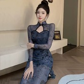 Pogenic 服装生放送女性アンカー、ハイエンドの若いスタイルのセクシーな中空メッシュ スプライシング改良版チャイナ ドレス yeyij84443728604