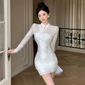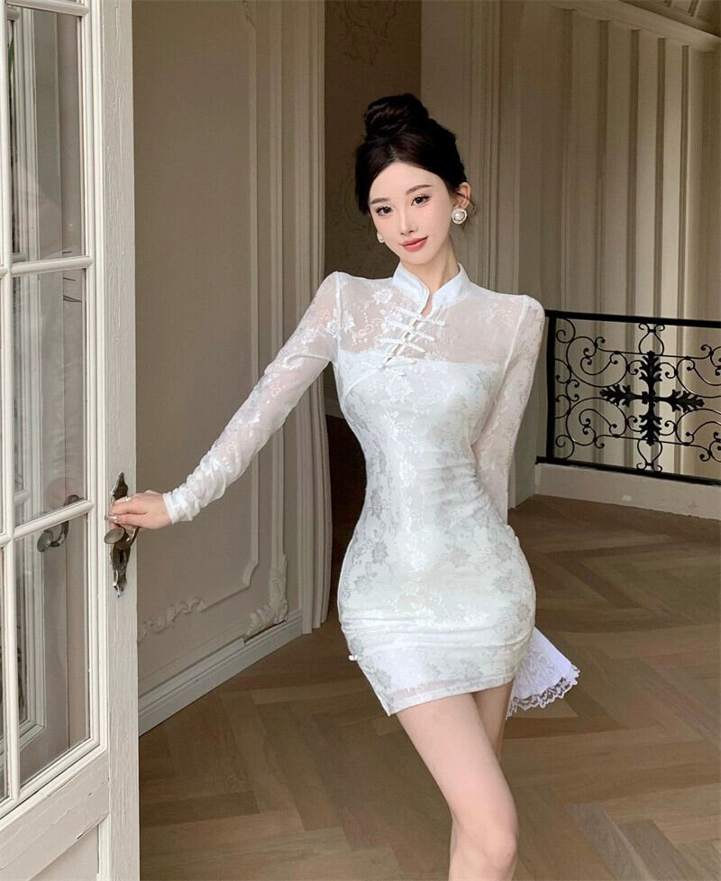 生放送女性アンカーのポジェニックなハイエンド若者のセクシーな白いレースの修正されたチャイナドレス ホワイト yeyij88441349376