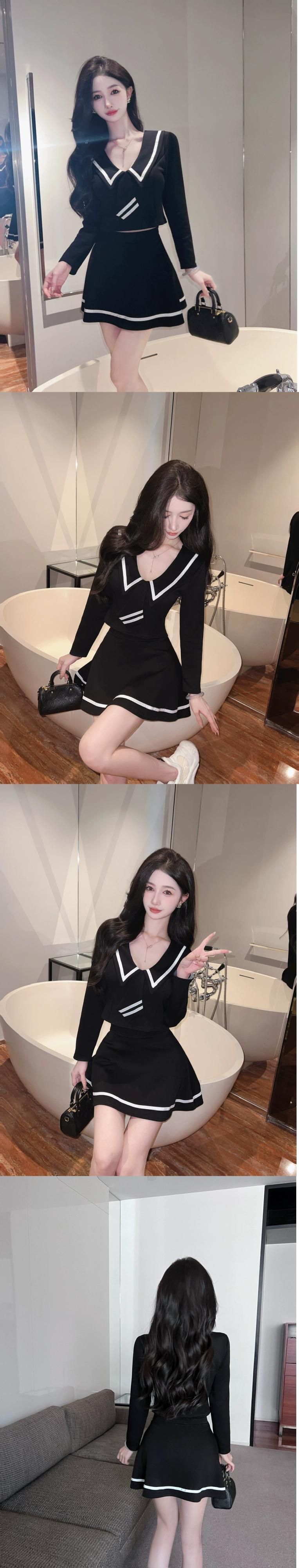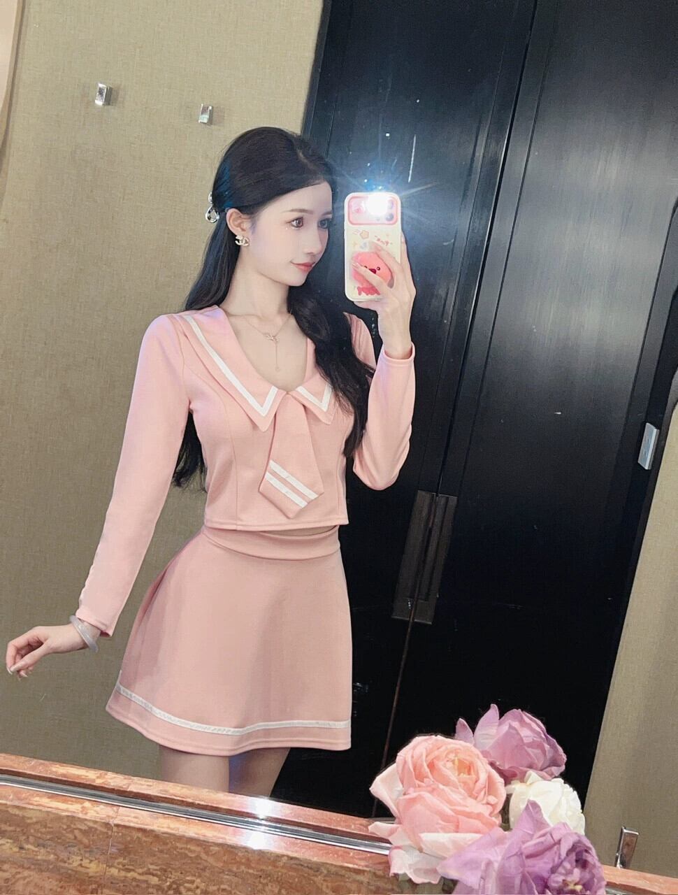 秋冬ナイトクラブ技術者作業服スーツレディースカレッジスタイルユニム長袖トップ+ハイウエストショートスカート2点セット ロング オータム 秋物 ウィンター 冬物 yeyij9741008721