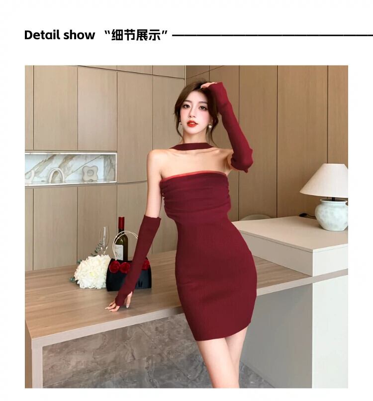 年次総会小さなドレス女性宴会気質セクシーなメッシュスプライシングワンショルダーショートヒップカバーチューブトップホルタードレス yeyij61695327248
