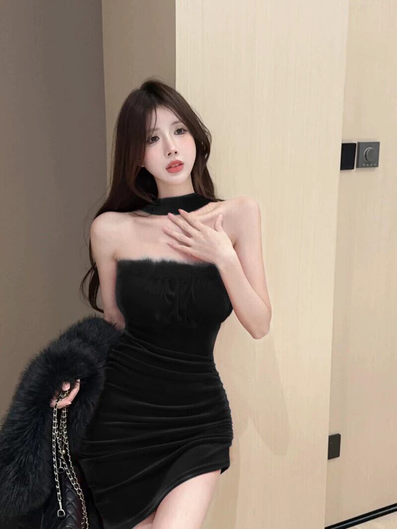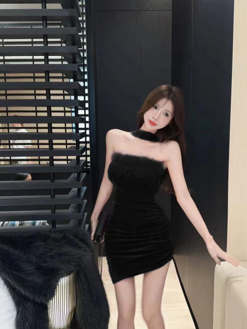 イヤーズパーティードレス、女性クリスマスシャツ、レッドゴールドベルベットのセクシーなワンショルダーショートホルターネックチューブトップドレス yeyij46365358490