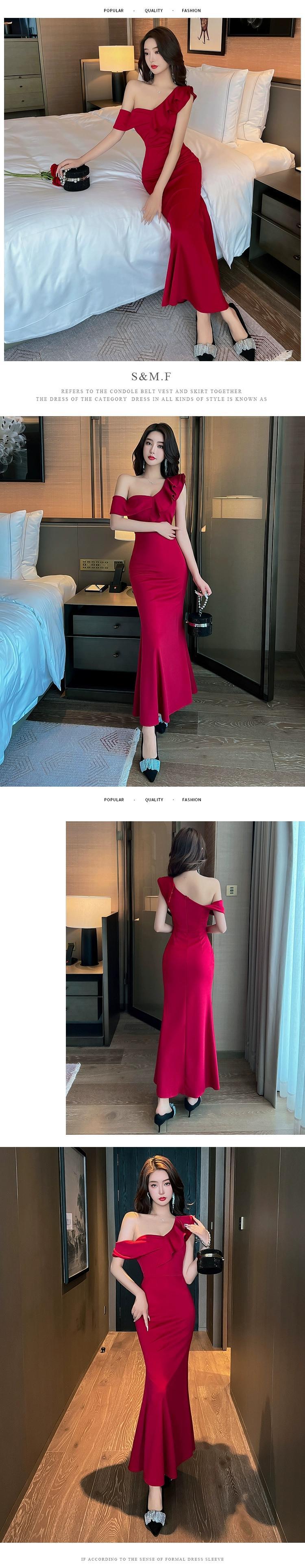 イブニングドレスの女性、高級ナイトクラブの作業服、宴会気質、スリムなロングドレス、セクシーなワンショルダーオフショルダードレス yeyij45757745062