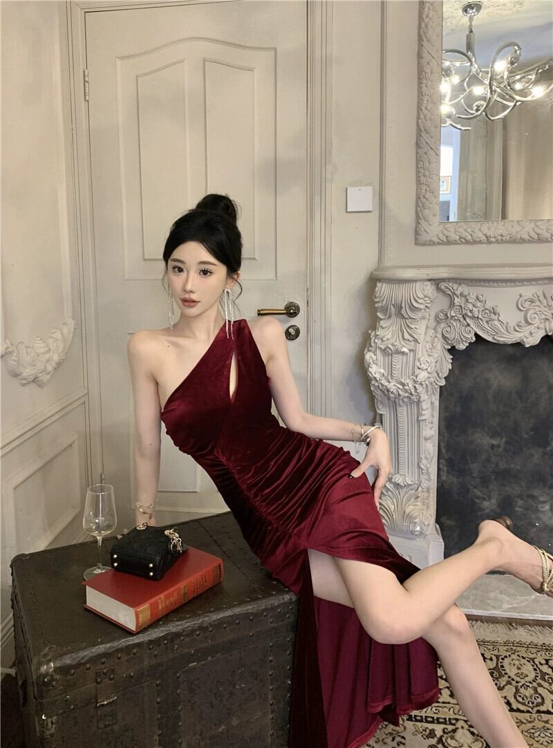 イブニングドレスの女性、ハイエンド、シンプルでエレガントな新年パーティー宴会ロングドレス、セクシーなスラントカラーワンショルダーオフショルダードレス yeyij30159284145
