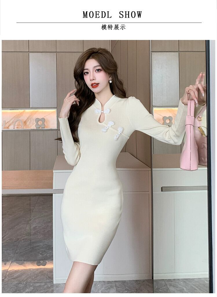改良版のチャイナドレス女性の新しい中国風の秋スタイルの若い中国風デイリーニットインナーボトムドレス オータム 秋物 yeyij53699568403