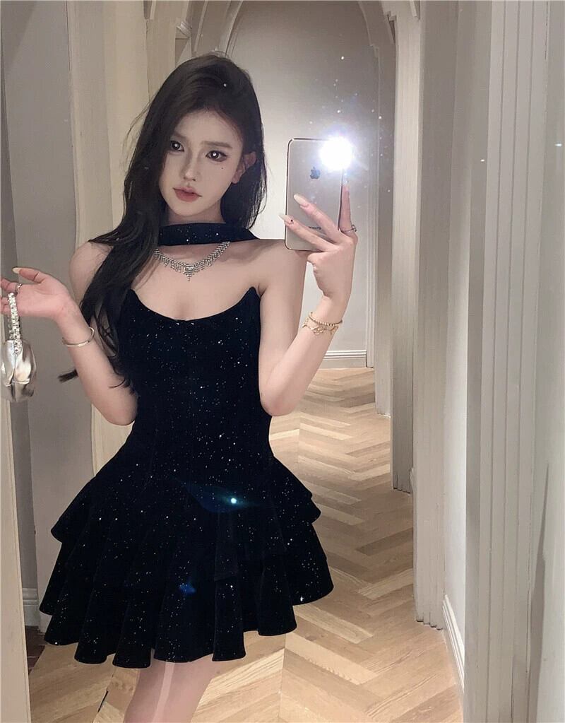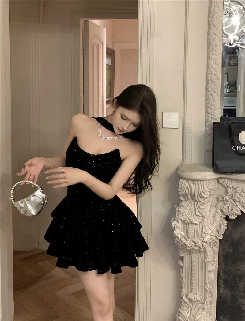 フレンチスタイルのイブニングドレス、光沢のある黒の短いチュチュスカート、ヘップバーンスタイルのセクシーなチューブトップドレス年次パーティー ショート ブラック パニエ ペチコート yeyij40247679543