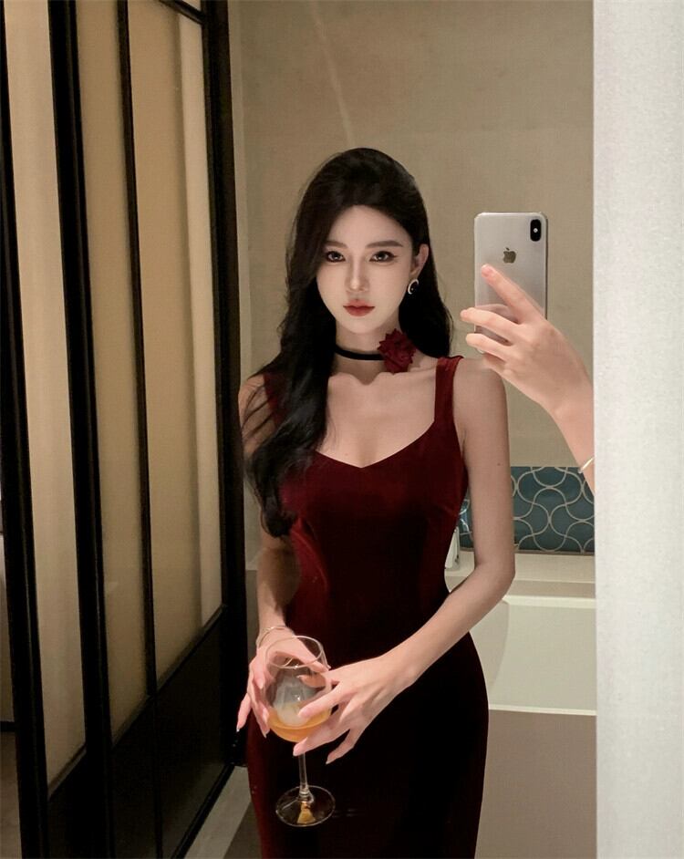 フレンチスタイルイブニングドレス、高級エレガントバンケットスタイルロングドレス、ベルベットフィッシュテールサスペンダードレス yeyij53648916512