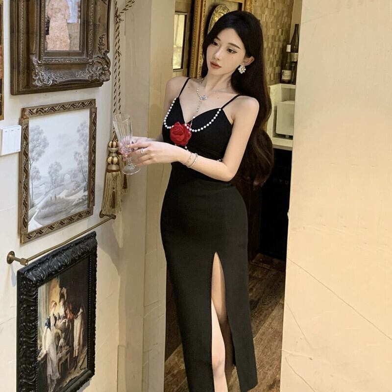 フレンチヘップバーンスタイルのブラックイブニングドレス、ハイエンドのライトラグジュアリーニッチ女性のハイエンドバンケット気質サスペンダードレス yeyij5294310587